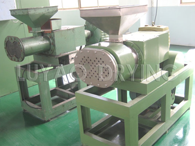 The screw extrusion granulator is twin-screw. Its extrusion form includes two types: front extrusion and side extrusion. It is composed of driving, deceleration, transmission box and main machine. It is added to the wet powdery material in the main machine. It is transported and compacted under the action of a specially designed screw element. The process of unbalanced pressure during opening pres···