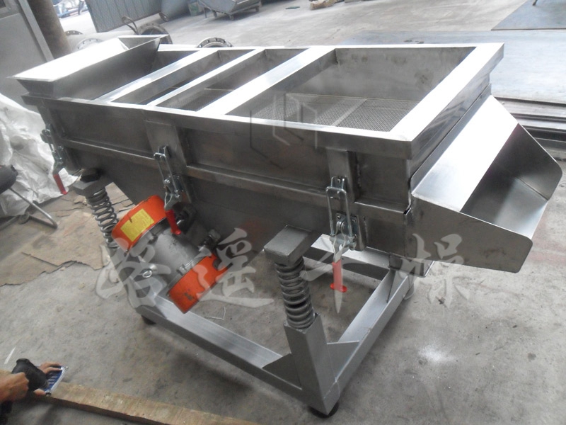 本機(jī)上部采用快拆式手柄,把整機(jī)連成一個(gè)整體,上蓋全密封、有效防止物料在過篩時(shí)由于振動(dòng)而產(chǎn)生粉塵飛揚(yáng)。篩體下部安裝振動(dòng)電機(jī),有效保證了物料的結(jié)構(gòu)緊湊,下部采用彈簧減振,使整機(jī)在平穩(wěn)狀態(tài)下工作。下面底座采用可調(diào)式,可調(diào)節(jié)正在過篩時(shí)的篩面傾斜角度,根據(jù)物料特性以取得過篩效果。