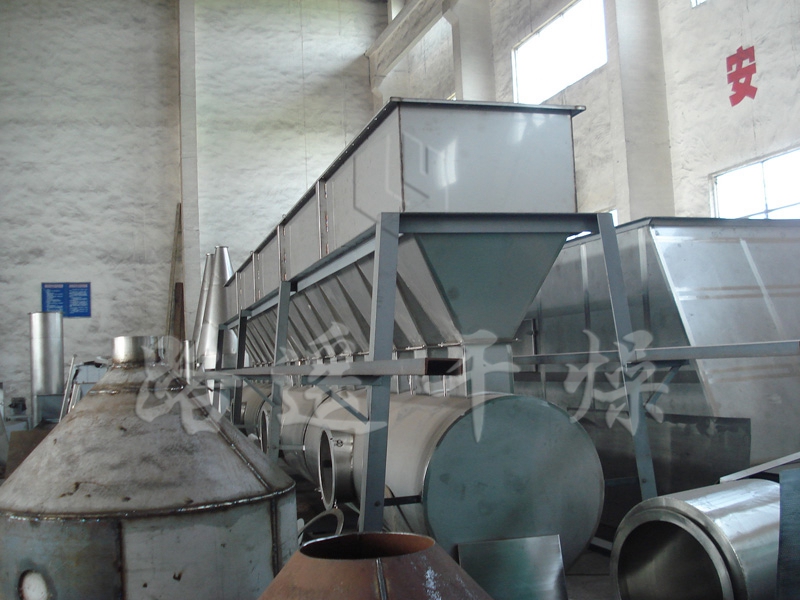 沸騰干燥,又稱流化床,它是由空氣過濾器、加熱器、沸騰床主機、旋風分離器、布袋除塵器、高壓離心風機、操作臺組成,由于干燥物料的性質不同,配套除塵設備時,可按需要考慮,可同時選擇旋風分離器、布袋除塵器,也可選擇其中一種,一般來說比重較大的如沖劑及顆粒物料干燥只需選擇旋風分離器,比重較輕的小顆粒狀和粉狀物料需配套布袋除塵器,并備有氣力送料裝置及皮帶輸送機供選擇。